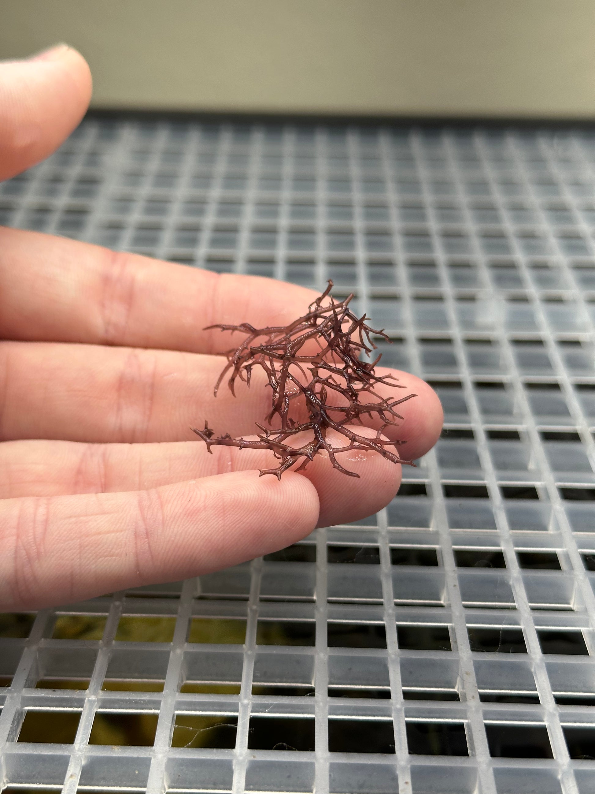 Blue octhodes is a stunning macroalgae. Its beautiful blue color and dense growth makes it a wonderful display algae, excellent for nutrient export as well! This species is not as commonly available as Blue Hypnea.