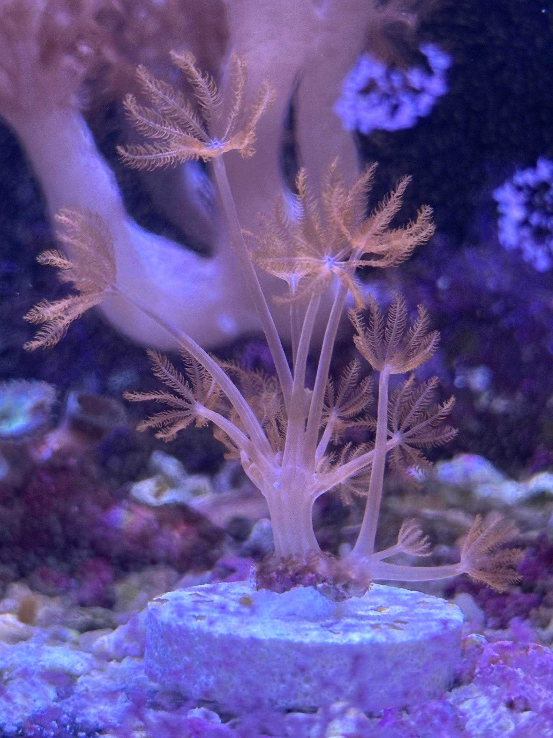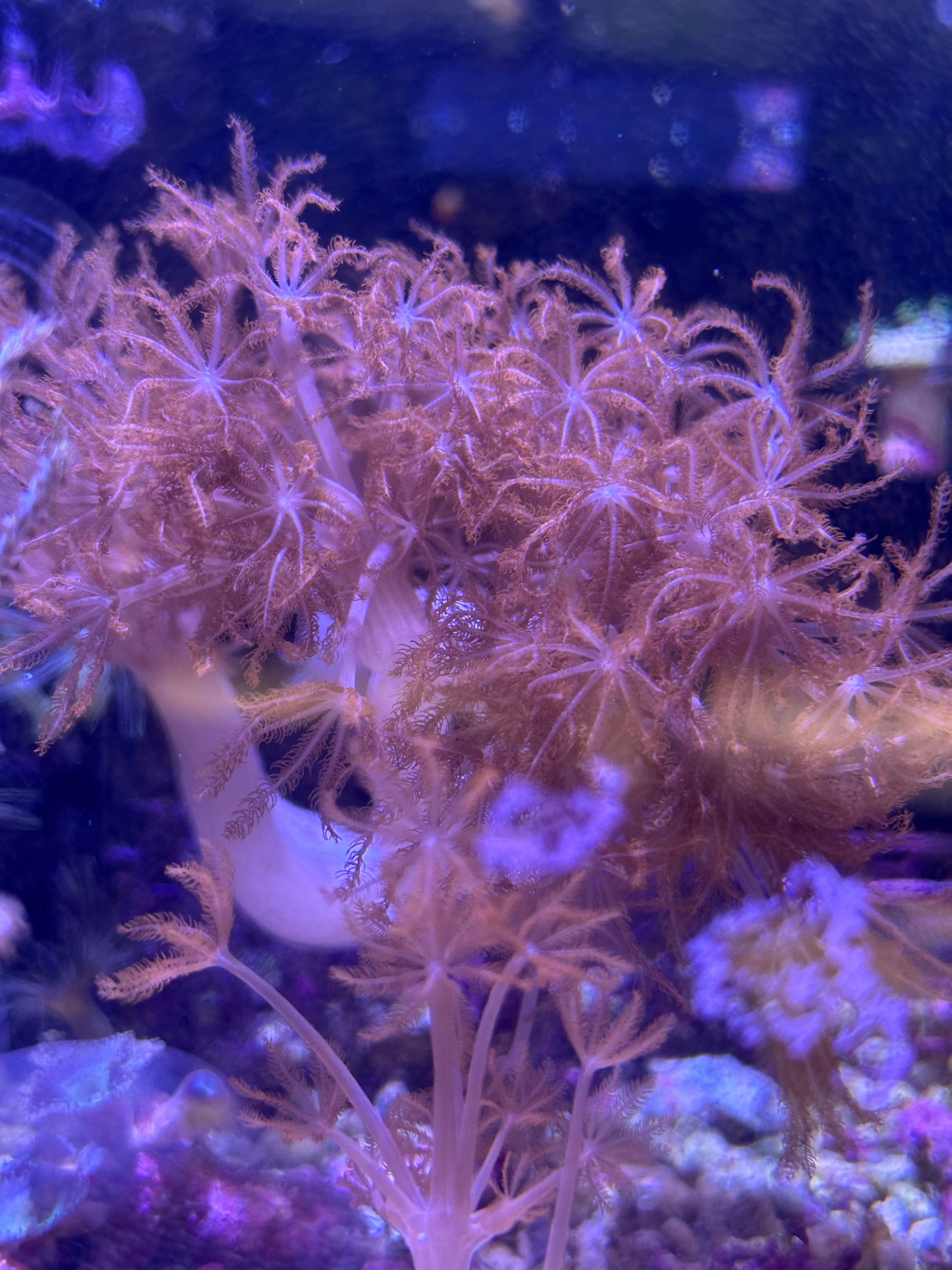 Ruby Red Pulsing Xenia is a stunning, less often available, variety of xenia with a fantastic deep red color. It also reproduces fairly quickly when in ideal conditions! Mother colony pictured in last photo.